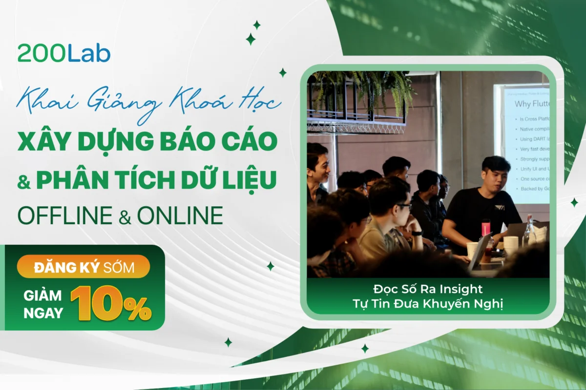 Khóa Học Data Analysis Báo Cáo Phân Tích Dữ Liệu của 200Lab giúp bạn học cách chuyển đổi dữ liệu thô thành những thông tin quý giá, đưa ra những quyết định kinh doanh chính xác và hiệu quả.