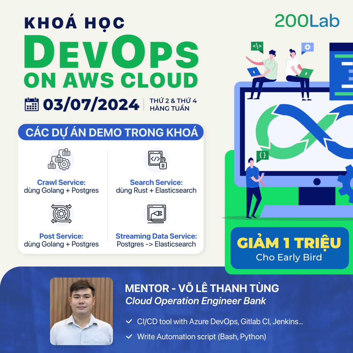 Bạn đang tìm kiếm một khóa học để nâng cao kỹ năng lập trình? Bạn muốn trở thành một lập trình viên chuyên nghiệp, có thể tự tin triển khai và quản lý các dự án phức tạp? Nếu câu trả lời là có, thì Khóa Học DevOps on AWS Cloud từ 200Lab chính là câu trả lời hoàn hảo dành cho bạn.